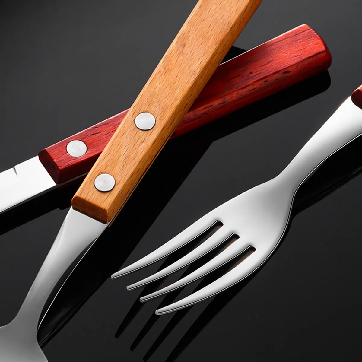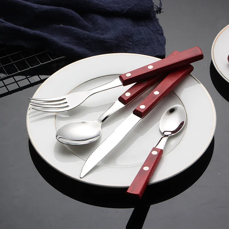 - Sturdy and Durable, Easy to Clean: The wooden handles of our wholesale cutlery sets are securely attached to the main body. Specially treated to effectively prevent cracking and mildew, with a smooth surface. Easy to clean and maintain after use.